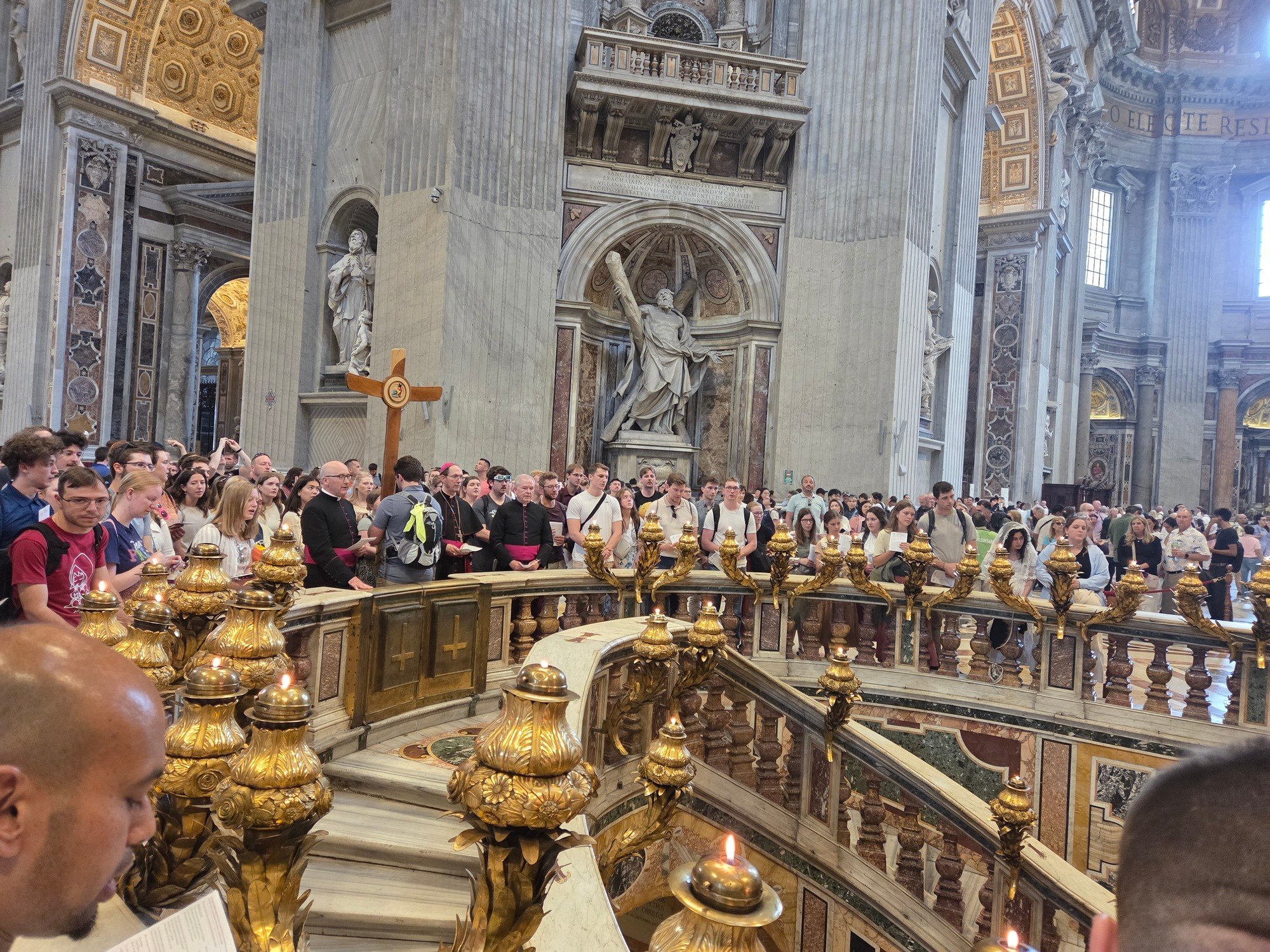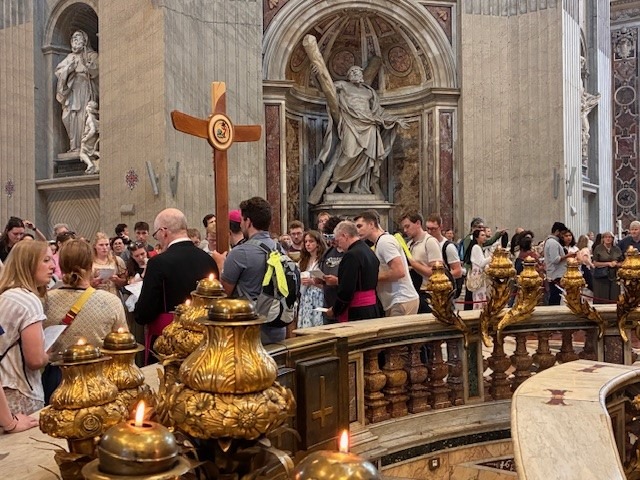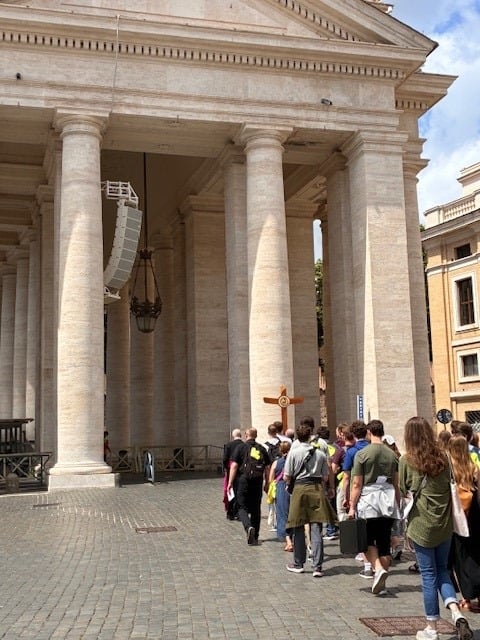 The Pilgrims from the Young Adult Jubilee Pilgrimage enjoyed their first full day in Rome. They because the day early with a visit to the Vatican Museums and got to see the Sistine Chapel. Bishop Folda and Fr. Slattery arrived safely to Rome and was able to join the group just in time for lunch. Bishop led the pilgrim's in the Jubilee procession to and through St. Peter's Basilica Holy Door. The Pilgrims were able to pray the prayers they gave us as we walked in procession through St Peter’s Holy Door. What a blessing it is to have Bishop led our pilgrims through the Holy Door.