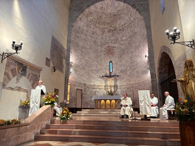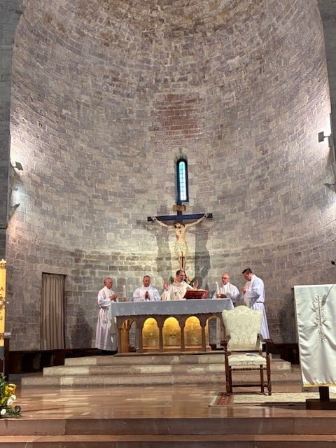 Once the pilgrims arrived in Assisi, they first stopped at the Basilica of St. Claire. They then had a chance to celebrate Mass at St Mary Major. While they were there, they were able to stop in and venerate Blessed Carlos Acutis who is buried there. Another wonderful day on their pilgrimage! Pilgrims celebrate mass at the Church of St. Mary MajorPilgrims pray at the tomb of Blessed Carlo Acutis at the Church of St. Mary Major